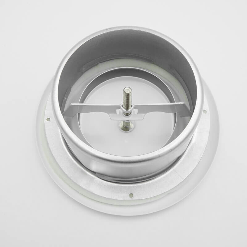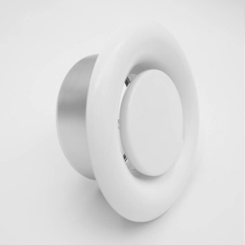 Konstrukcja zaworu wywiewnego / anemostatu gwarantuje niski poziom hałasu oraz szybki i łatwy montaż. Anemostat wkręcamy w ramkę montażową, która ma przetłoczenia (tak jak nakrętkę do słoika).