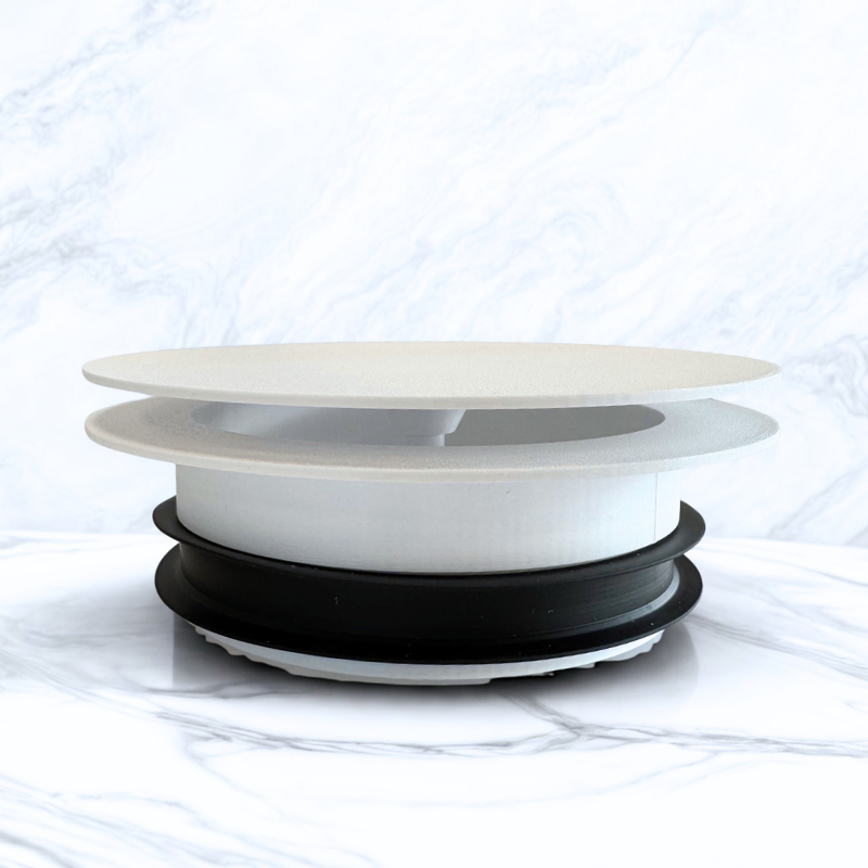 Biały anemostat VP-S 100B przystosowany do montażu w kanale o średnicy 100mm.