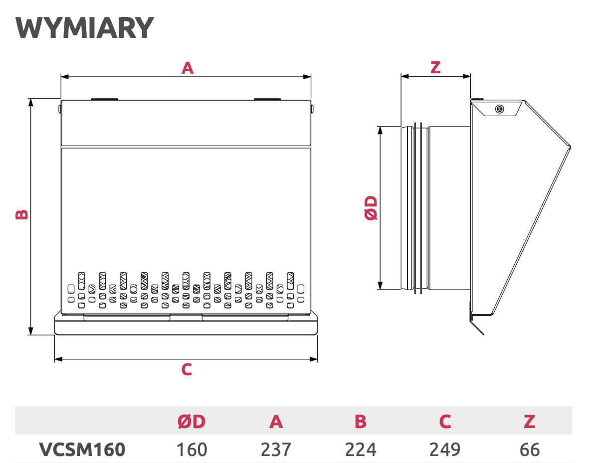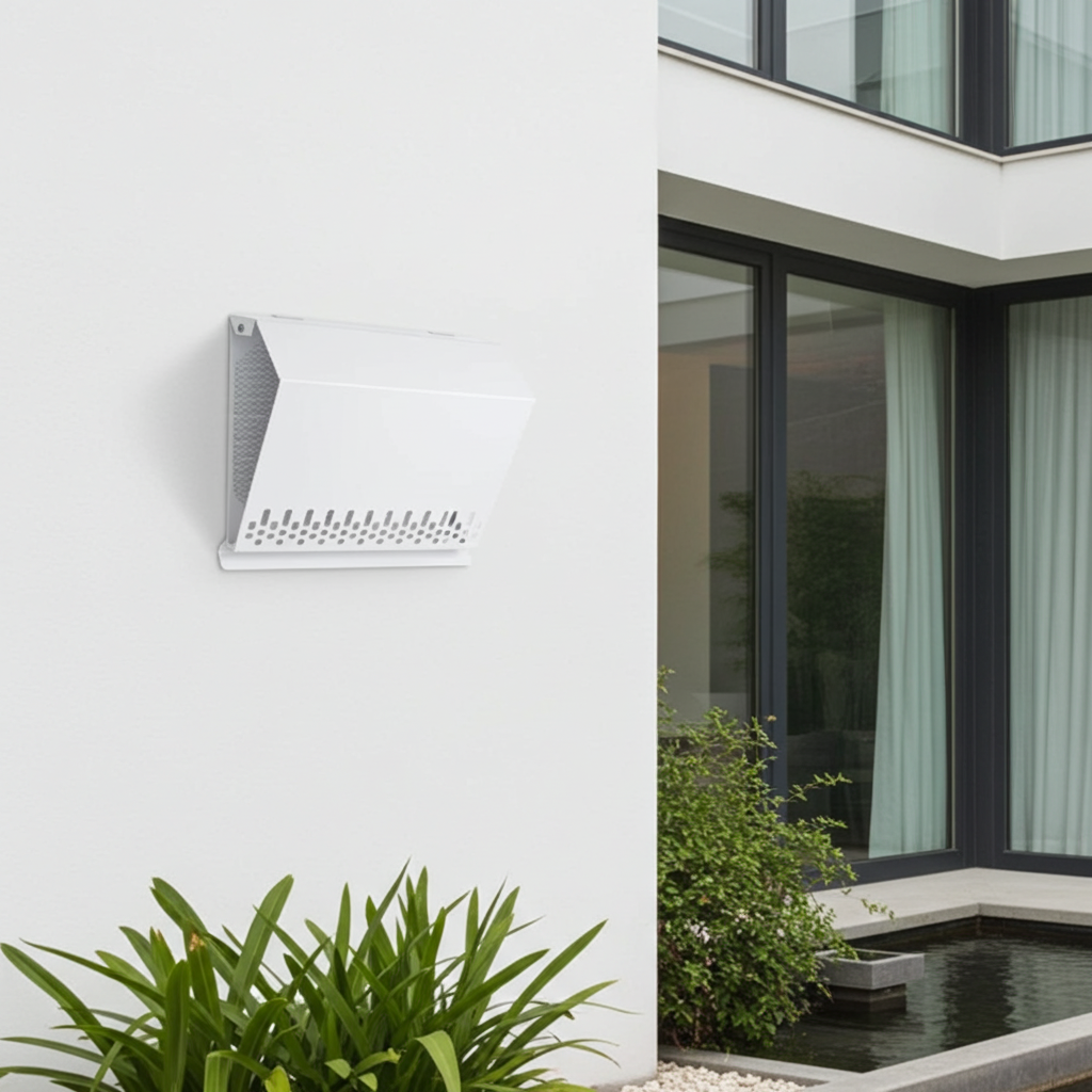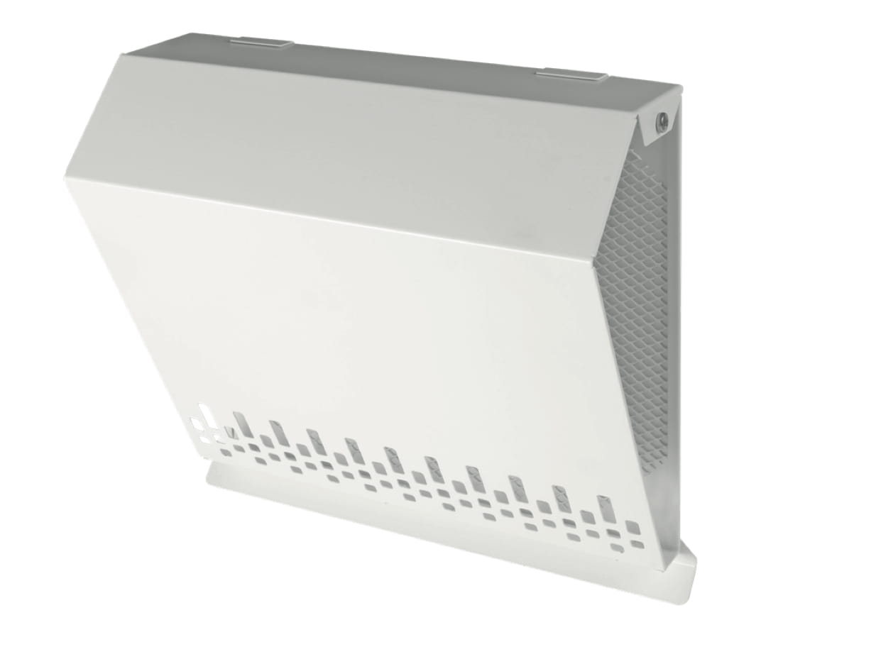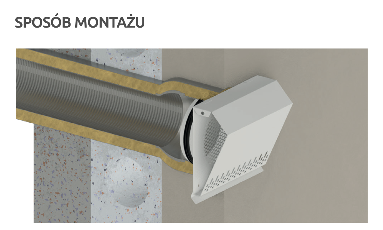 Standardowo wyposażona w okapnik chroniący ścianę przez powstawaniem zacieków oraz siatkę zabezpieczającą otwór wlotowy. Specjalnie zaprojektowana geometria zapewnia minimalny