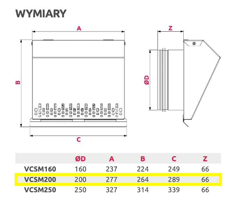 Czerpnia ścienna fi 200 w kolorze grafitowym (symbol VCSM200GR). Głównie stosowana w systemach wentylacji mechanicznej z rekuperacją.