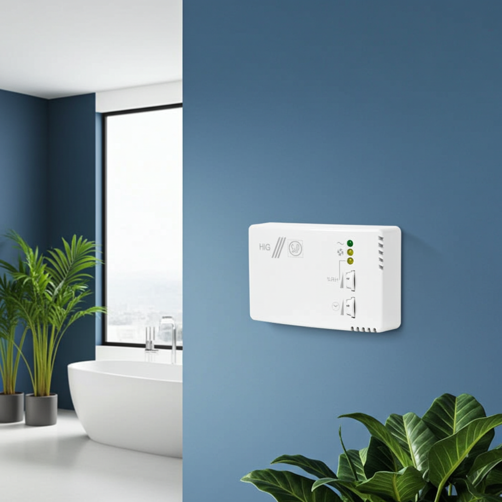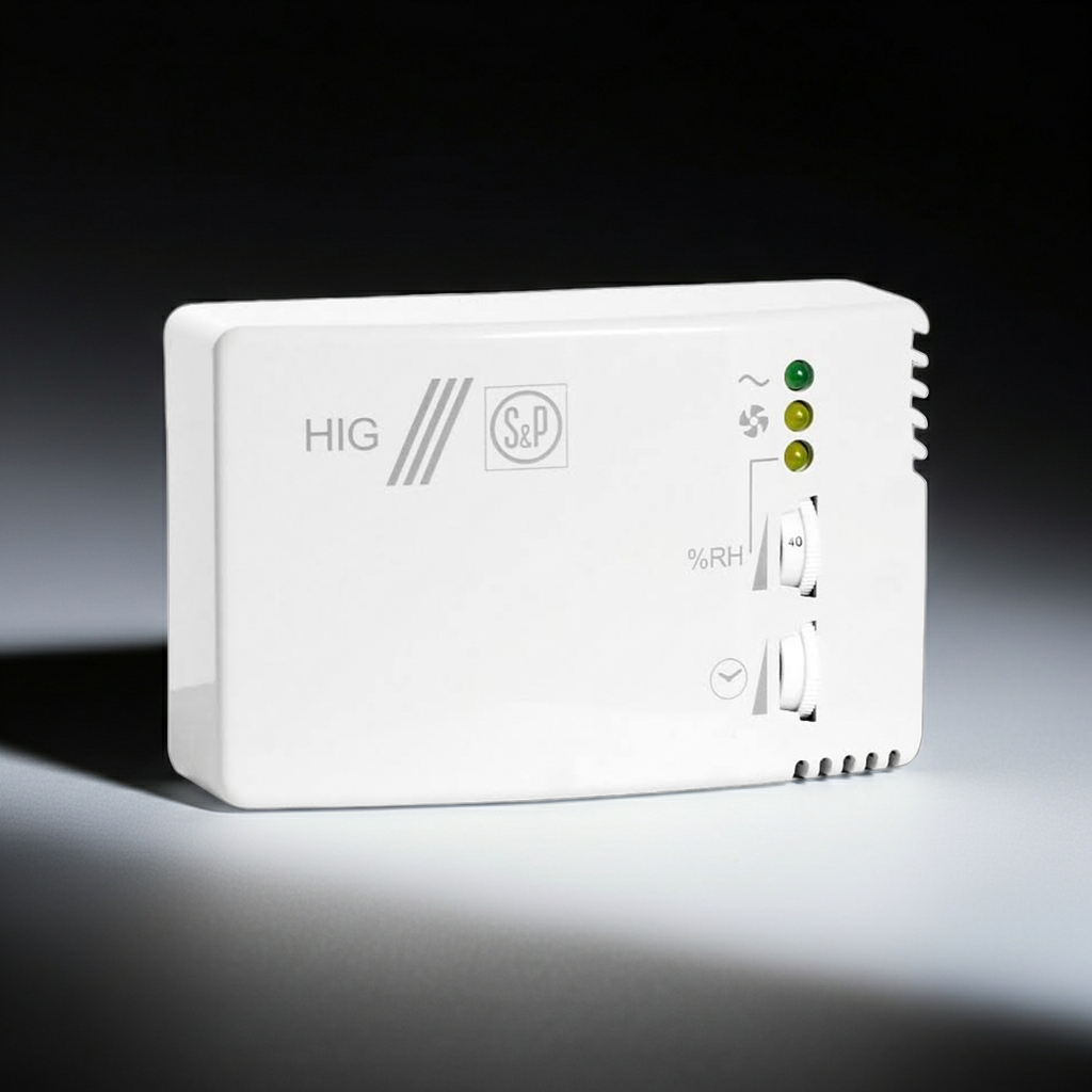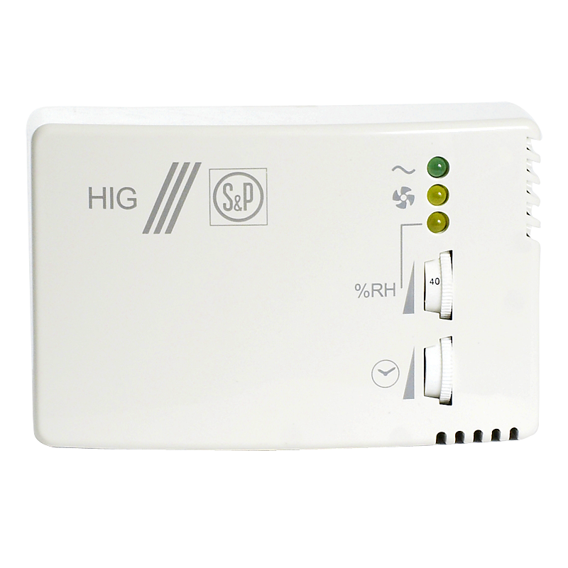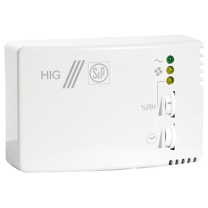 Czujnik wilgotności HIG-2 – czujnik włącza lub wyłącza wentylator w zależności od wilgotności powietrza. Czujnik wyposażony jest w opóźnienie czasowe regulowane (1-25 min).