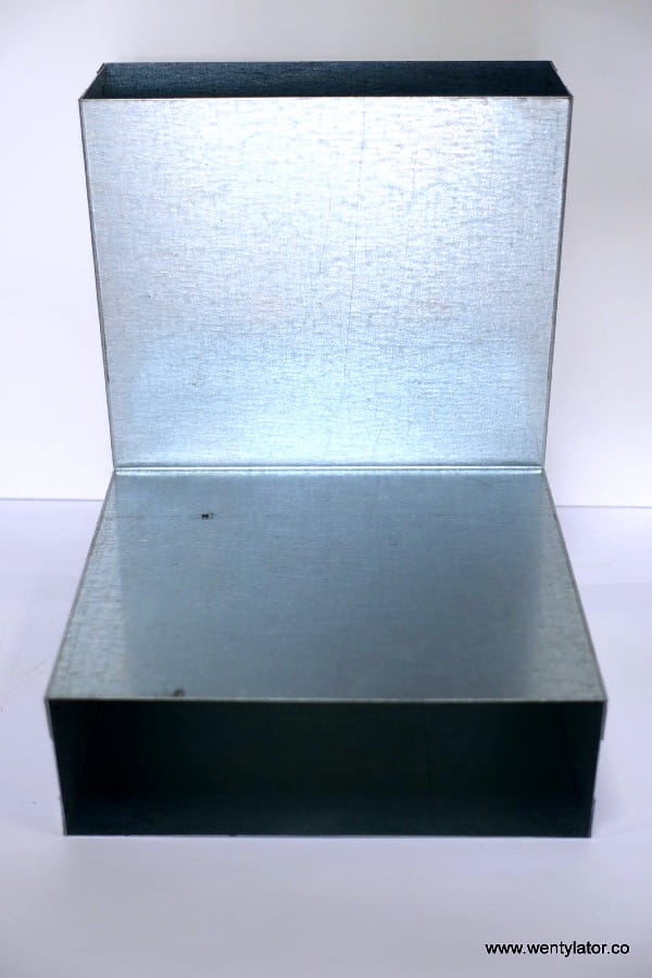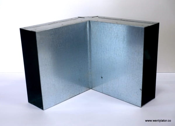 Kolano ocynkowane pionowe (ściana/strop) 150x50mm. Kąt 90 stopni. Do połączenia kolana z inną kształtką lub kanałem należy użyć złączki.
