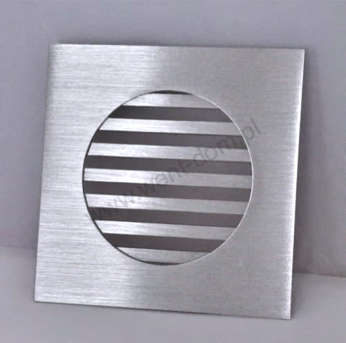 Kratka nierdzewna wentylacyjna wykonana z wysokiej jakości stali nierdzewnej szlifowanej. Wymiar wpustu montażowego kratki do wyboru (do rur 100mm, 125mm, 150mm). Wypełnienie kratki stanowią pręty nierdzewne szlifowane o wymiarze 6x6mm. Kratkę charakteryzuje elegancki design oraz fakt, że po zamontowaniu praktycznie licuje się ze ścianą. Standardowo, kratkę wkleja się do otworu w ścianie.