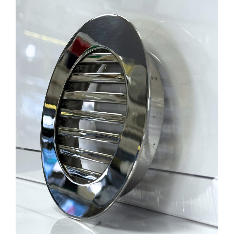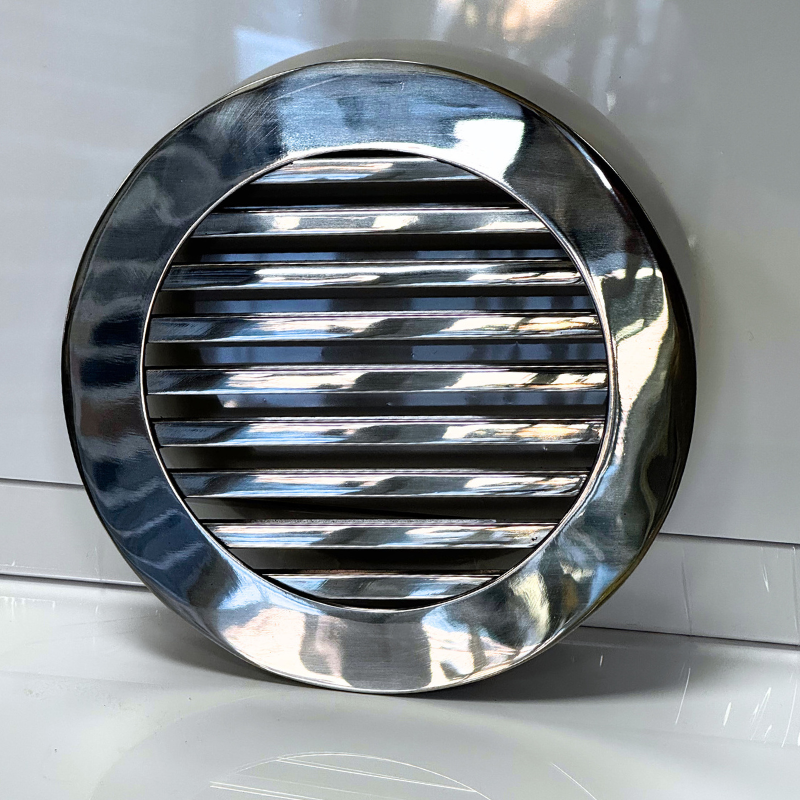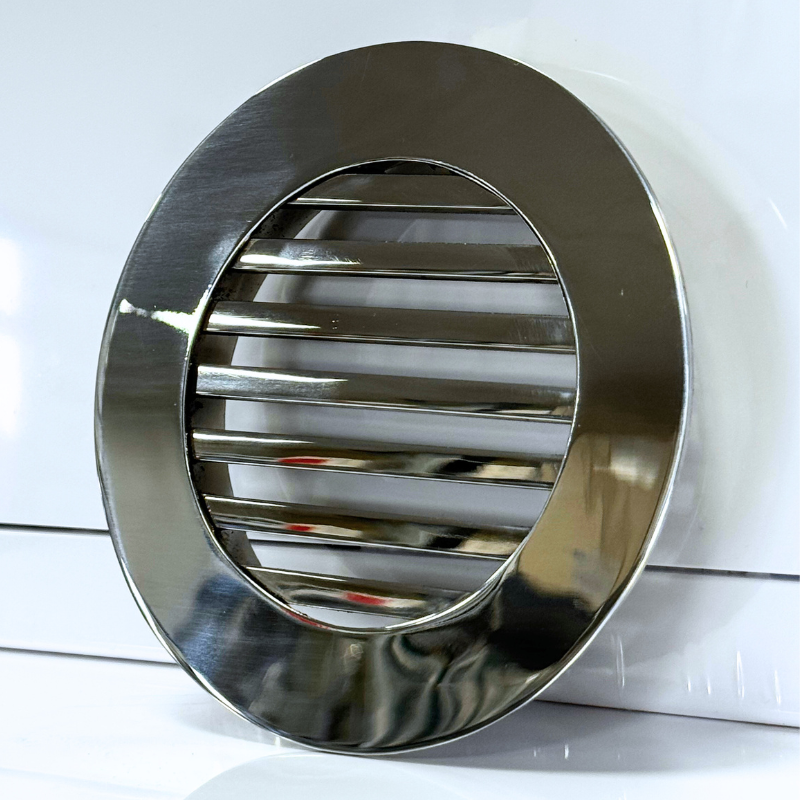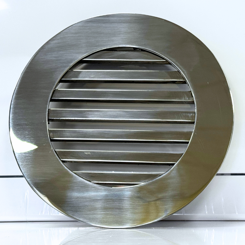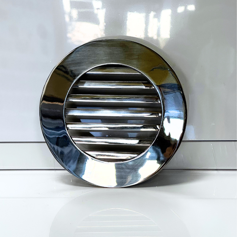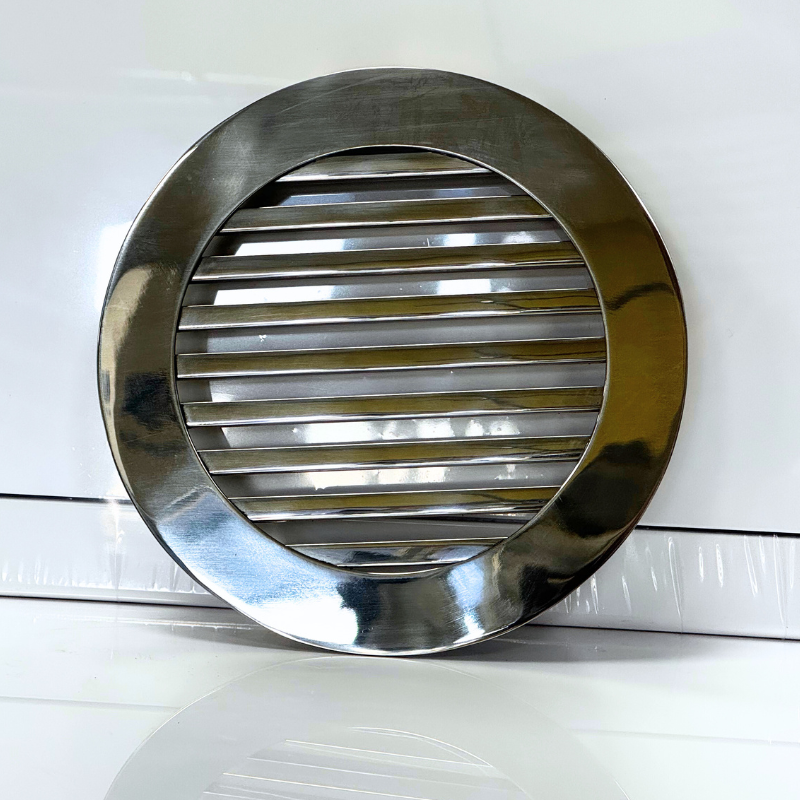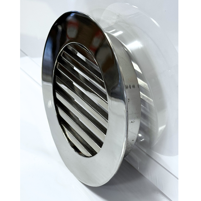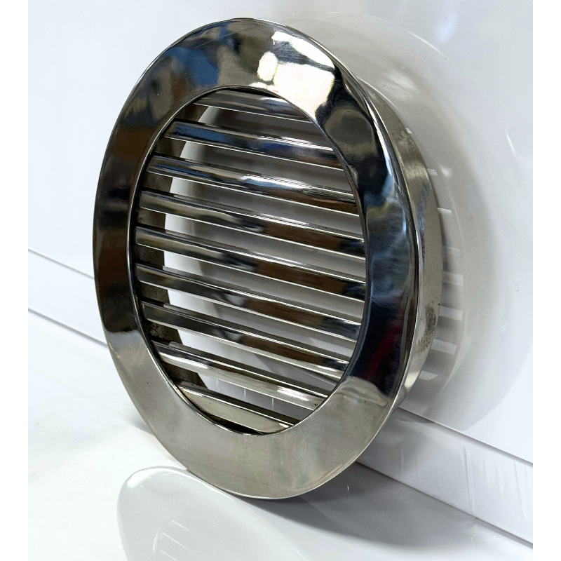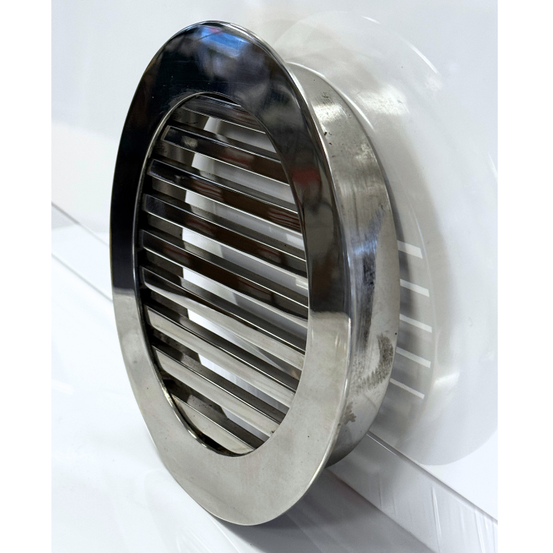 Kratka nierdzewna wentylacyjna wykonana z wysokiej jakości stali nierdzewnej polerowanej. Wymiar wpustu montażowego kratki do wyboru (do rur 100mm, 125mm). Wypełnienie kratki stanowią pręty nierdzewne polerowane o wymiarze 6x6mm. Kratkę charakteryzuje elegancki design oraz fakt, że po zamontowaniu praktycznie licuje się ze ścianą. Standardowo, kratkę wkleja się do otworu w ścianie.