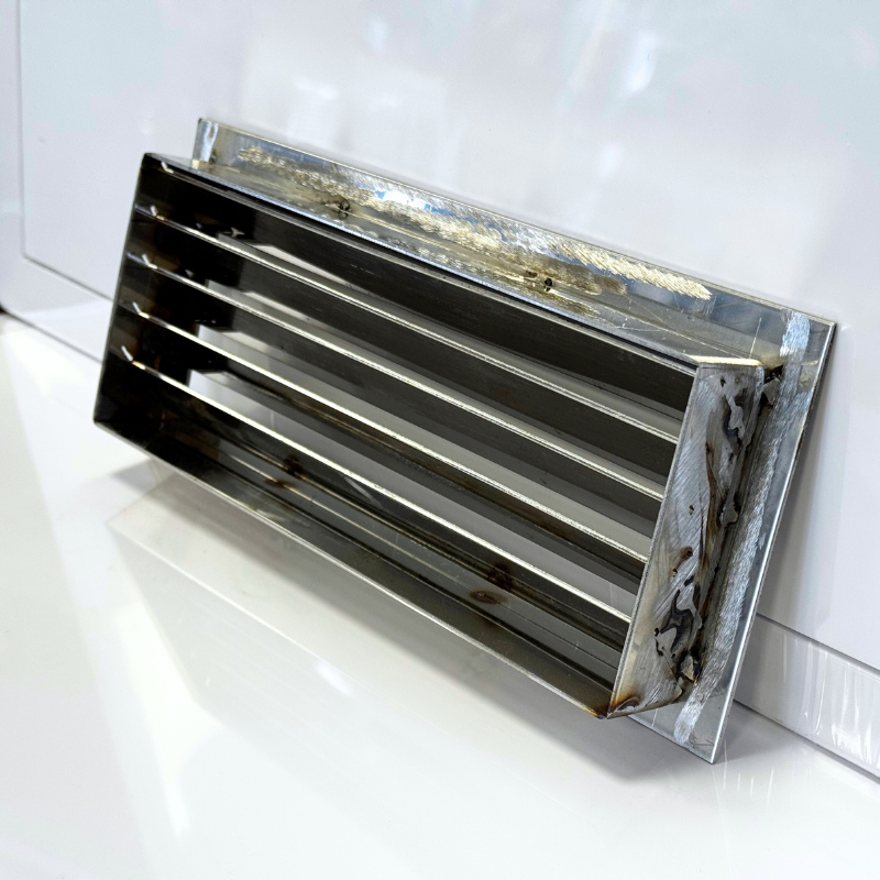 Widoczność spawów lub możliwe pozostałości pasty polerskiej od strony montażowej kratki jest naturalne przy wyrobie ręcznym elementów ze stali nierdzewnej, mosiądzu czy miedzi.