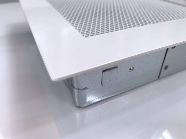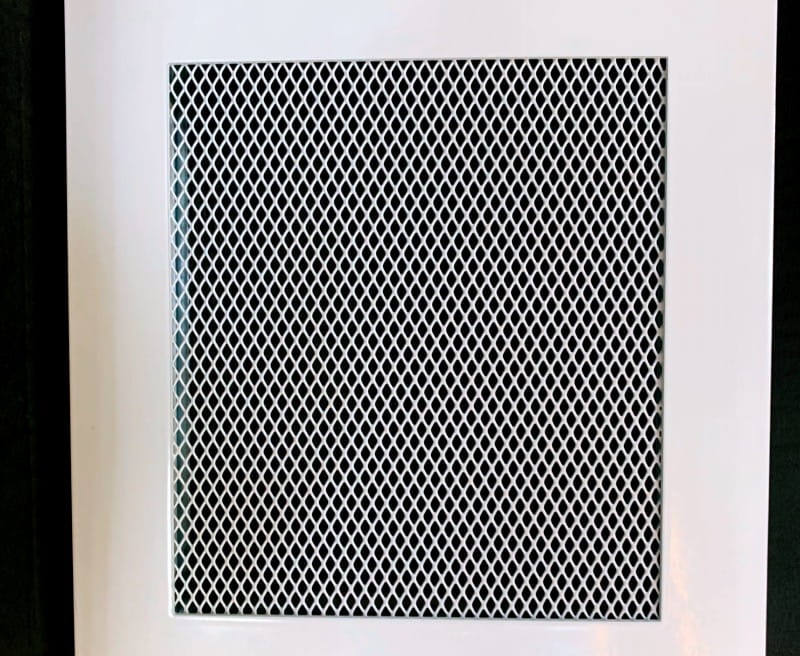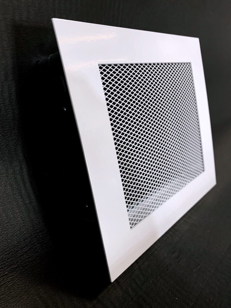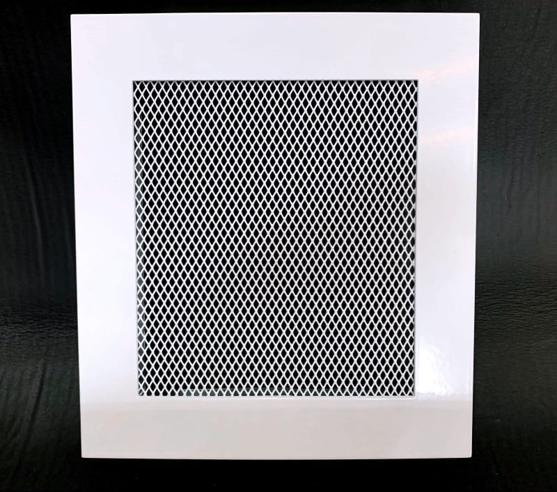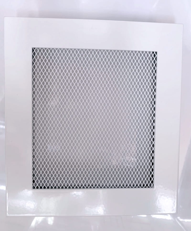 Biała kratka kominkowa lub wentylacyjna. Metalowa. Płaska.