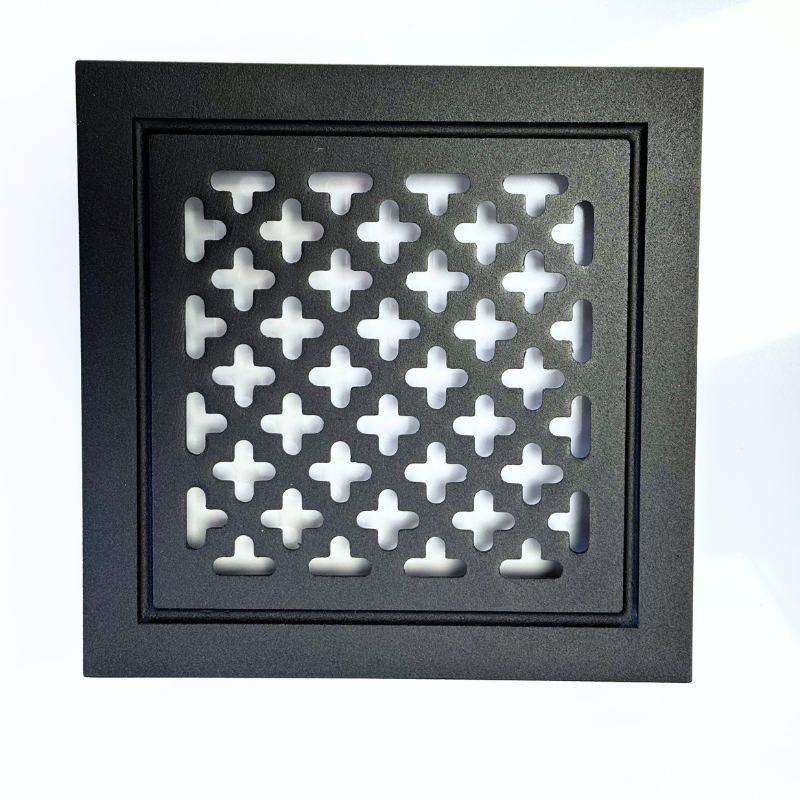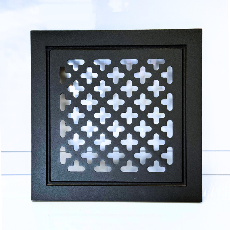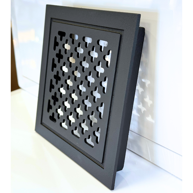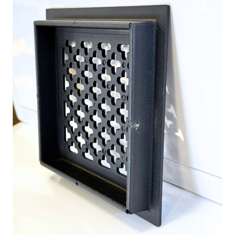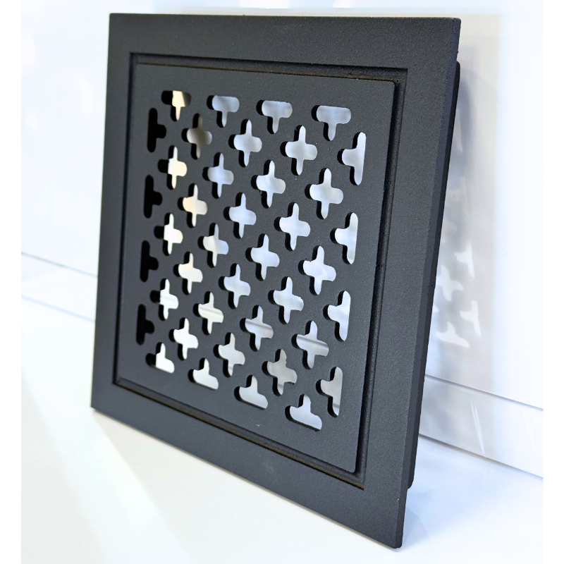 Kratka aluminiowa wentylacyjna koniczynka retro malowana na czarno w macie.