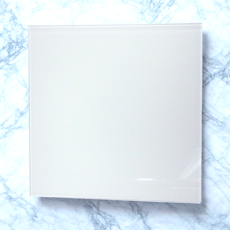 Kratka wentylacyjna osłonowa wykonana z białego szkła. Połysk. Idealnie komponuje się z białą ścianą lub kafelkami. Panel zewnętrzny przykrywa strefę zabrudzenia. Łatwa w demontażu. Można montować w ścianie i suficie.