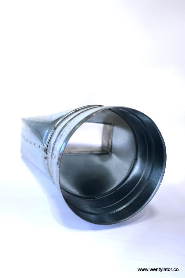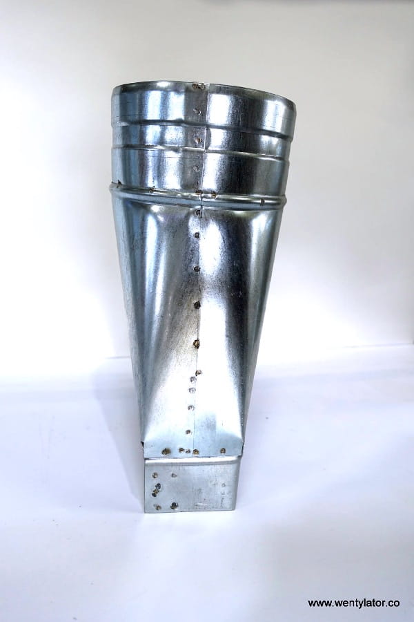 Redukcja ocynkowana z kanału prostokątnego 150x50mm na średnicę 100mm.