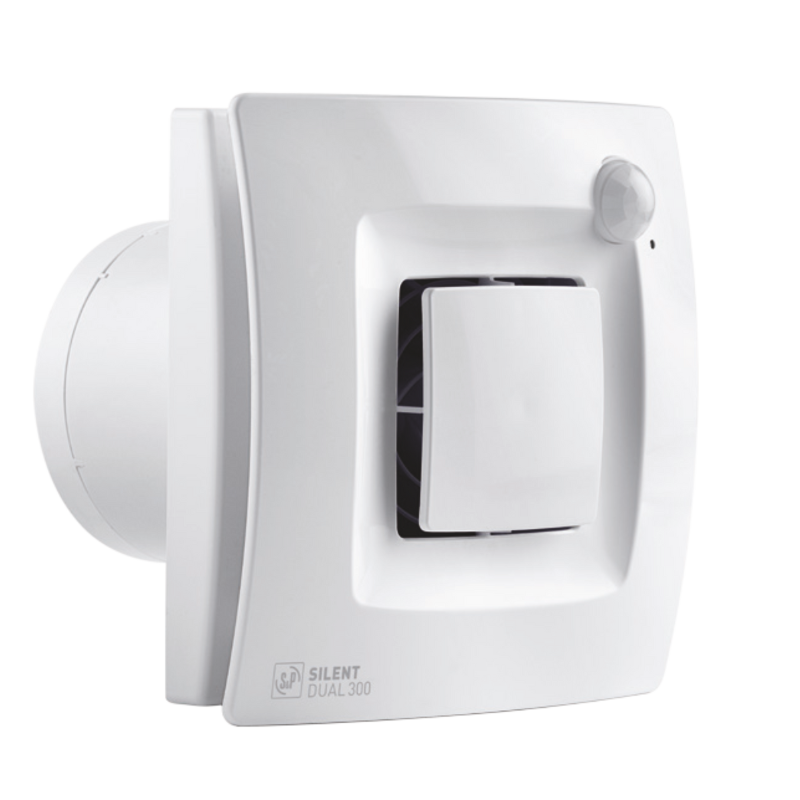Wentylator Silent Dual jest wyposażony w czujnik ruchu PIR (pasywny czujnik podczerwieni) i czujnik wilgotności. Czujnik wigotności kontroluje poziom wilgoci w pomieszczeniu automatycznie dostosowując próg uruchamiania i prędkość obrotową do rzeczywistych warunków otoczenia. Kontrola wilgotności ma pierwszeństwo przed czujnikiem PIR, natomiast czujnik PIR ma pierwszeństwo przed stałą kontrolą warunków środowiskowych.