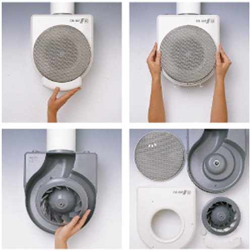 Kuchenny wentylator do okapu CK 40F. Wentylator promieniowy o unikalnej konstrukcji. Wentylator posiada łatwą w demontażu obudowę, odkręcany wirnik, specjalny pojemnik na skroplony tłuszcz i pokryty teflonem filtr siatkowym. Tłuste opary nie mają dostępu do silnika. Wszystko to sprawia, że wentylator CK jest niezawodny i banalnie łatwo utrzymać go w czystości. Zdemontowane elementy można myć w zmywarce.
