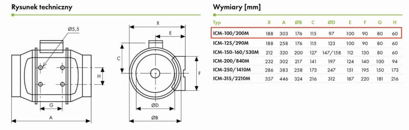 Wentylator ICM jest przystosowany do transportu niezanieczyszczonego powietrza. Idealnie nadaje się do instalacji nawiewnych, jak i wyciągowych budynków mieszkalnych, użyteczności publicznej, biur, sklepów. Urządzenie możemy również stosować do instalacji wyciągowych z okapów kuchennych - wymagane jest zastosowanie filtrów tłuszczowych