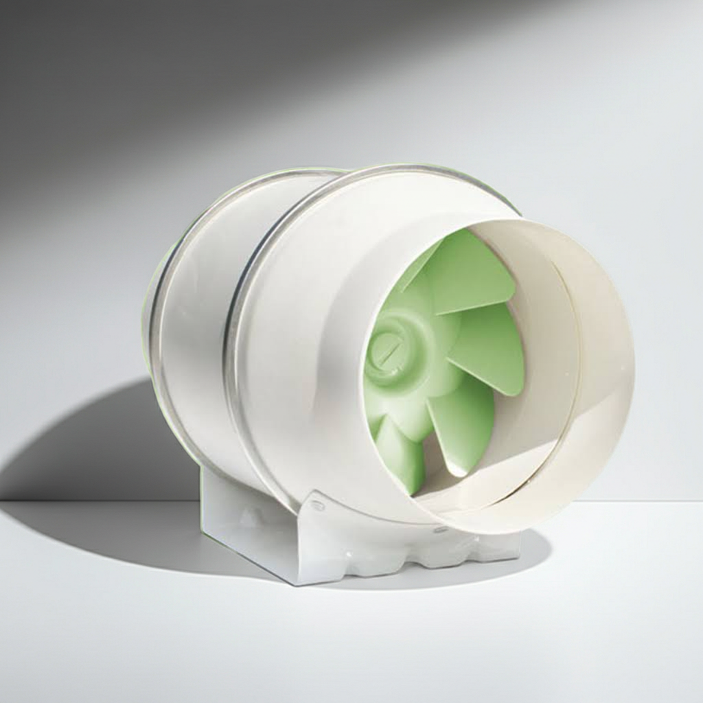 Wentylator kanałowy, diagonalny. Jego unikalna konstrukcja umożliwia osiągnięcie wysokich parametrów pracy przy stosunkowo niskim poziomie hałasu oraz niskim zużyciu energii. Obudowa wentylatora wykonana z polipropylenu, natomiast wirnik z tworzywa sztucznego ABS. Specjalne złącza ułatwiają montaż i demontaż urządzenia oraz jego konserwację. Urządzenie możemy instalować zarówno w pozycji poziomej, jak i pionowej.