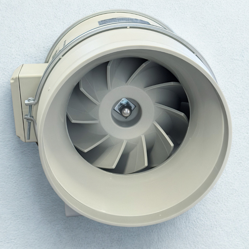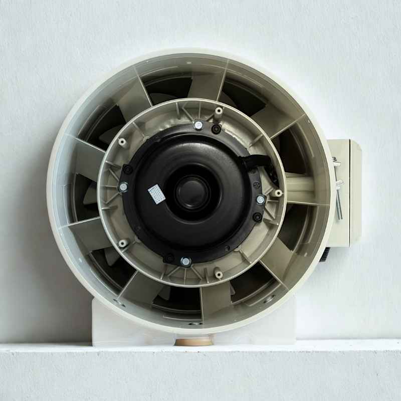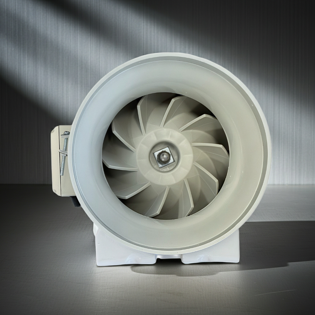 Wentylator kanałowy, diagonalny. Unikalna konstrukcja umożliwia osiągnięcie wysokich parametrów pracy przy stosunkowo niskim poziomie hałasu oraz niskim zużyciu energii. Obudowa wentylatora wykonana z polipropylenu, natomiast wirnik z tworzywa sztucznego ABS. Specjalne złącza ułatwiają montaż i demontaż urządzenia oraz jego konserwację. Urządzenie możemy instalować zarówno w pozycji poziomej, jak i pionowej.