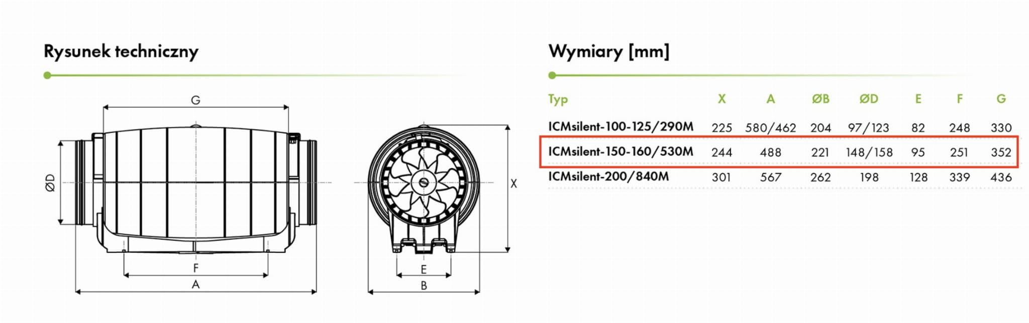 Wentylator kanałowy ICMsilent-150-160/530