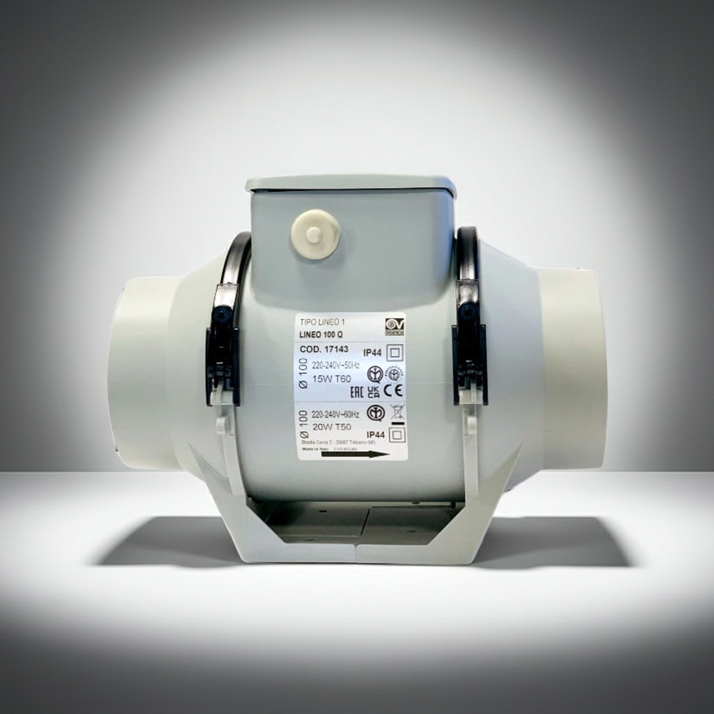 Wentylator kanałowy Lineo 100Q o średnicy przyłączeniowej do kanału wentylacyjnego 100mm.