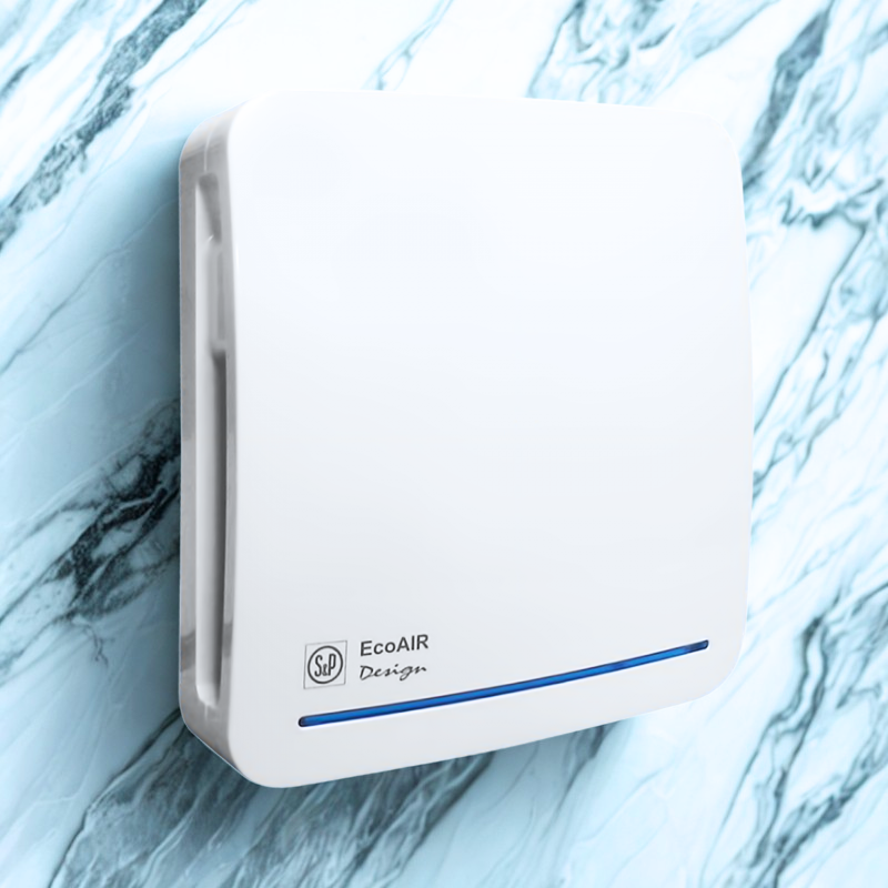 Wentylator łazienkowy ECOAIR Design S jest wydajnym i energooszczędnym rozwiązaniem do ciągłej wentylacji w łazienkach, toaletach i małych pomieszczeniach. Wentylator odśrodkowy został zaprojektowany tak, aby zapewnić stałą wymianę powietrza, działając nieprzerwanie z ustalonym przepływem co zapobiega gromadzeniu się wilgoci oraz nieprzyjemnych zapachów. Dzięki zoptymalizowanej pracy jest idealny do instalacji wymagających stałej wentylacji zachowując bardzo niskie zużycie energii.