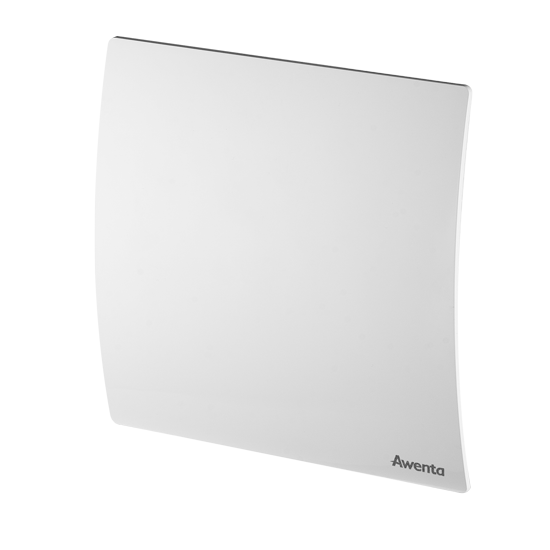 Cichy wentylator łazienkowy z nowoczesnym panelem przednim. Model z higrostatem (czujnikiem wilgoci) oraz timerem (opóźnieniem wyłączenia). Panel przedni wykonany z białego tworzywa. Na panelu w dolnym rogu widnieje napis Awenta.