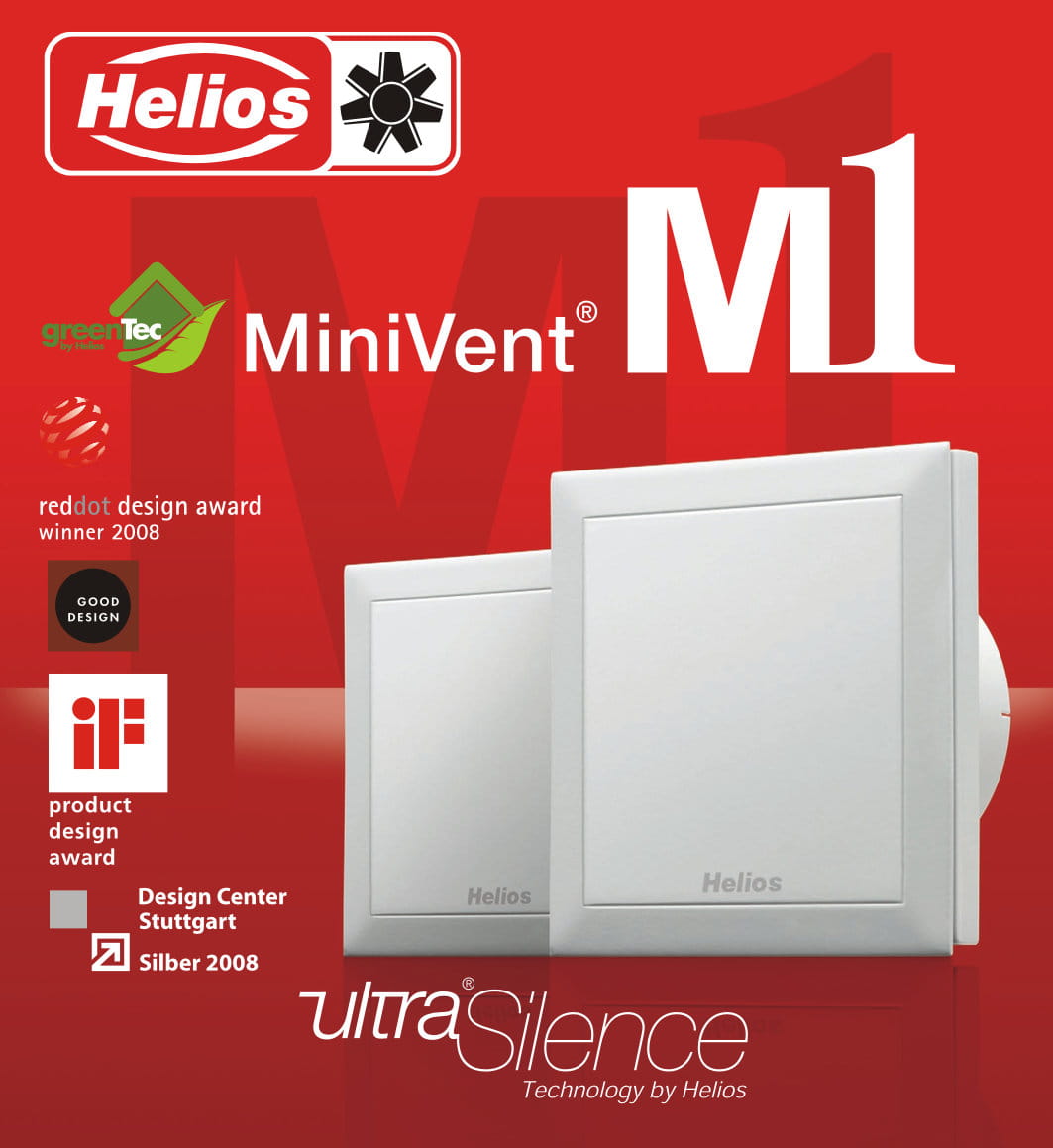 Wentylator Helios MiniVent M1 jest najlepszym wyborem do wentylacji toalet, łazienek i innych małych pomieszczeń. Wentylator Helios ma kompaktowe wymiary. Nadaje się do montażu na ścianie lub suficie. Wentylatory Helios są montowane m. in. w mieszkaniach, domach, pomieszczeniach przemysłowych i użyteczności publicznej.
