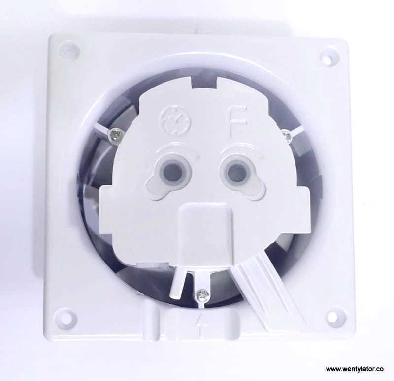Bardzo cichy! Tylko 26dB (pomiar z odległości 3m); 28dB (pomiar z odległości 1mb). Wymiar wpustu wentylatora 98mm. Wymiar zewnętrzny panela 175mmx175mm. IPX2