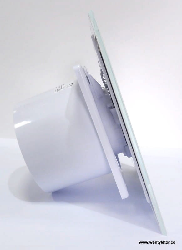 Bardzo cichy! Tylko 26dB (pomiar z odległości 3m); 28dB (pomiar z odległości 1mb). Wymiar wpustu wentylatora 98mm. Wymiar zewnętrzny panela 175mmx175mm. IPX2
