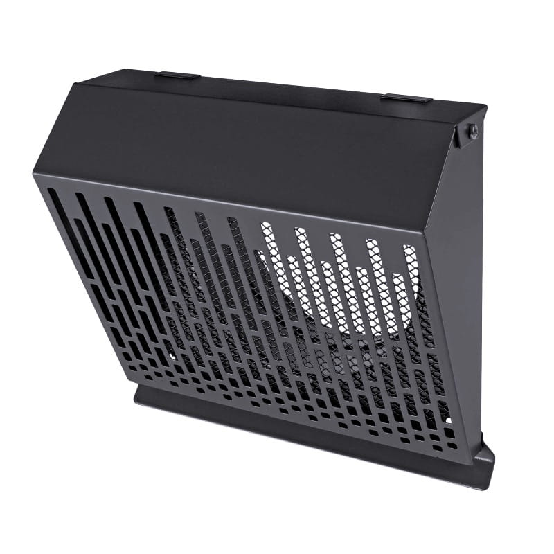 Standardowo wyposażona w okapnik chroniący ścianę przed powstawaniem zacieków oraz siatkę zabezpieczającą otwór wylotowy. Zastosowana geometria prostopadłego do ściany wyrzutu powietrza