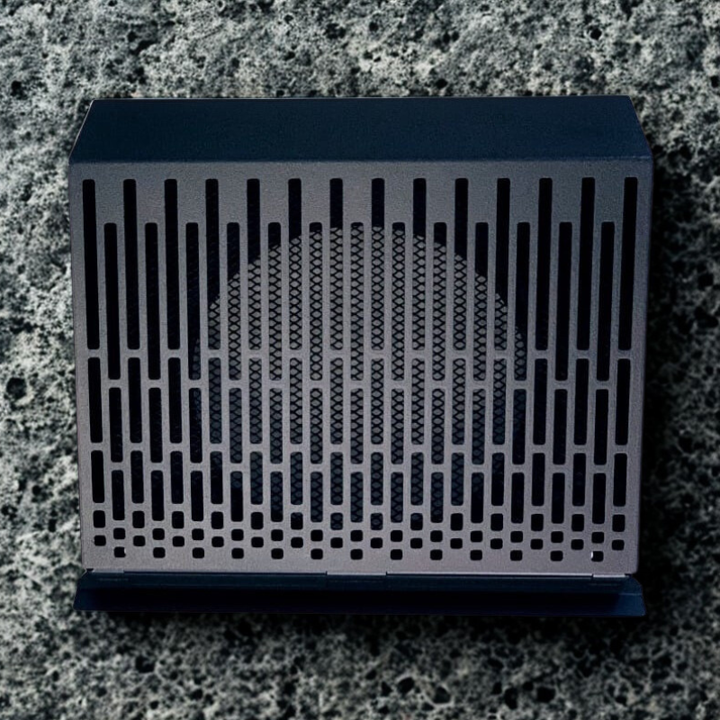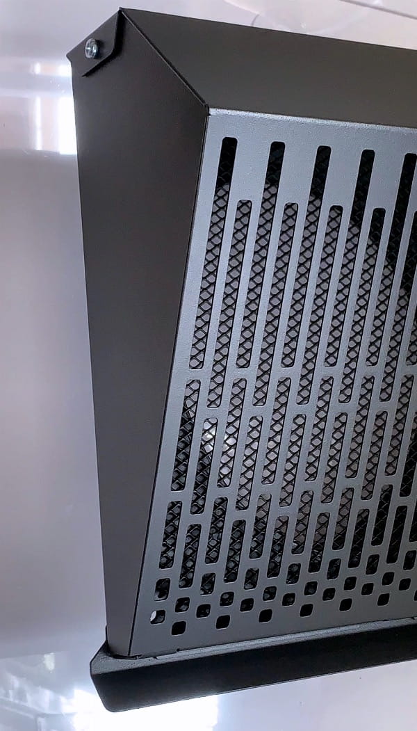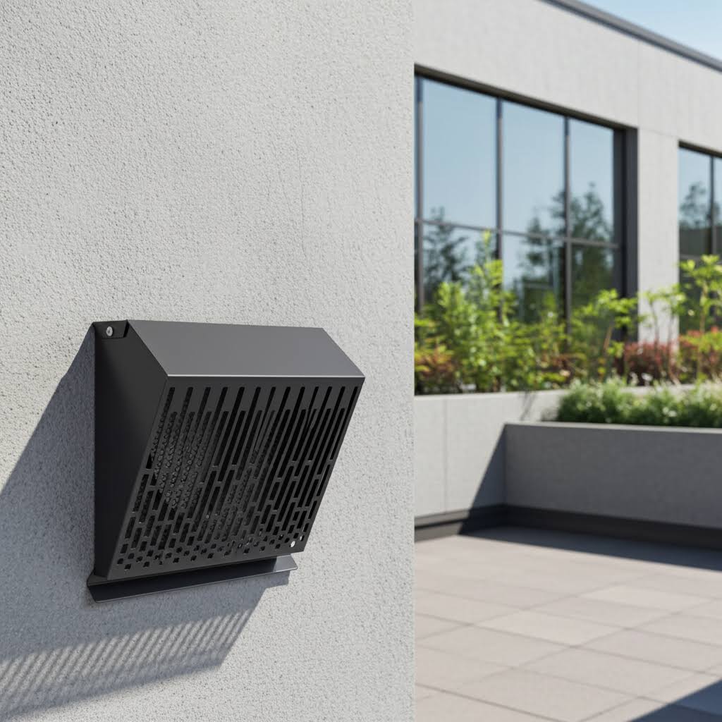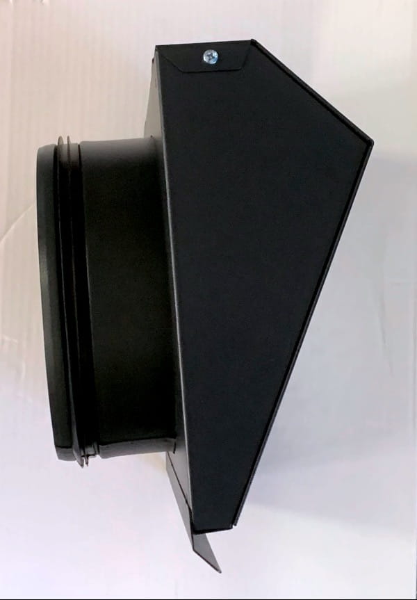 Standardowo wyposażona w okapnik chroniący ścianę przez powstawaniem zacieków oraz siatkę zabezpieczającą otwór wylotowy. Zastosowana geometria prostopadłego do ściany wyrzutu powietrza