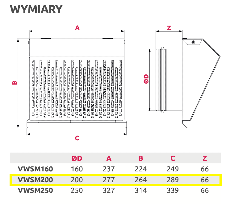 z zamknięciem bocznym zapobiega zabrudzeniu ściany od zużytego powietrza. Specjalnie zaprojektowana geometria zapewnia minimalny opór / spadek ciśnienia wyrzucanego powietrza.