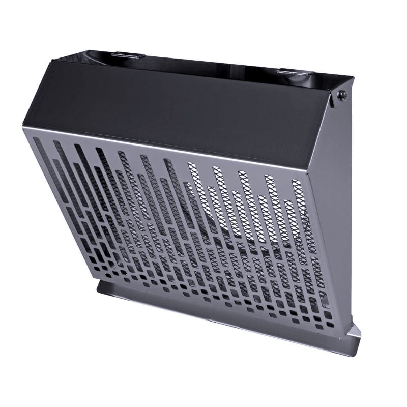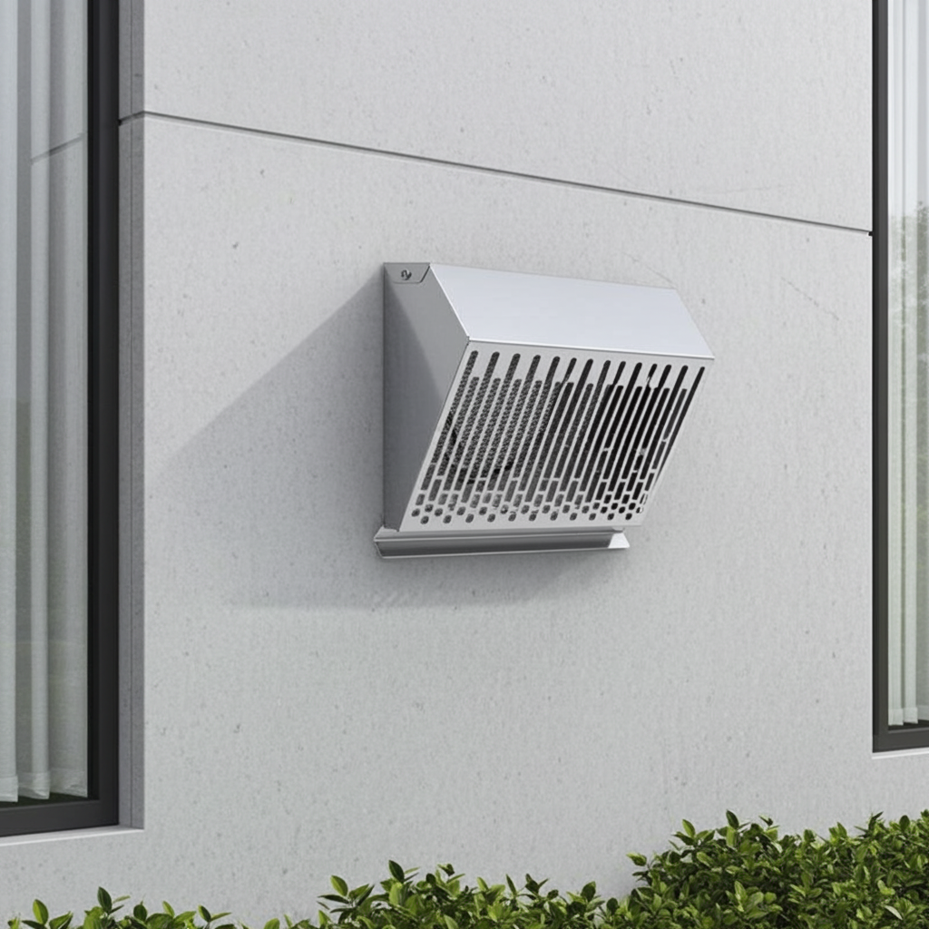 Standardowo wyposażona w okapnik chroniący ścianę przed powstawaniem zacieków oraz siatkę zabezpieczającą otwór wylotowy. Zastosowana geometria prostopadłego do ściany wyrzutu powietrza z zamknięciem bocznym zapobiega zabrudzeniu ściany od zużytego powietrza. Specjalnie zaprojektowana geometria zapewnia minimalny opór / spadek ciśnienia wyrzucanego powietrza.