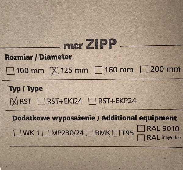 Zawór przeciwpożarowy Mercor ZIPP RST 125 EI 120 przeznaczony do montażu na zakończeniach instalacji wentylacji ogólnej, w miejscu przechodzenia tych instalacji przez przegrody budowlane.